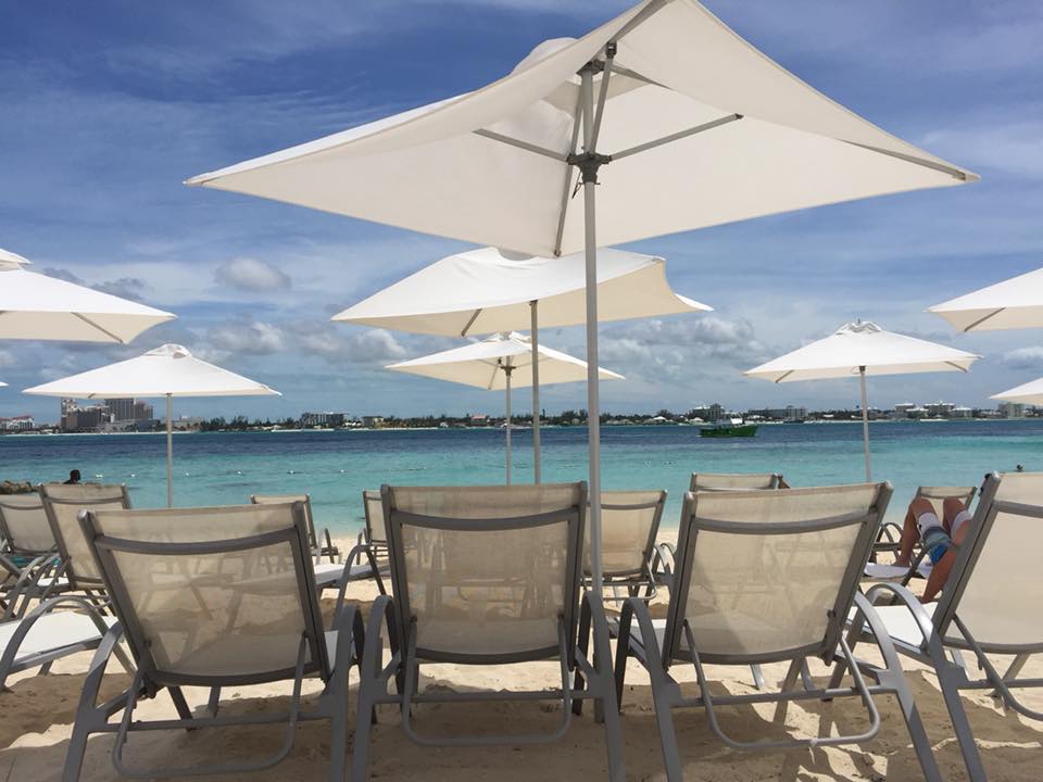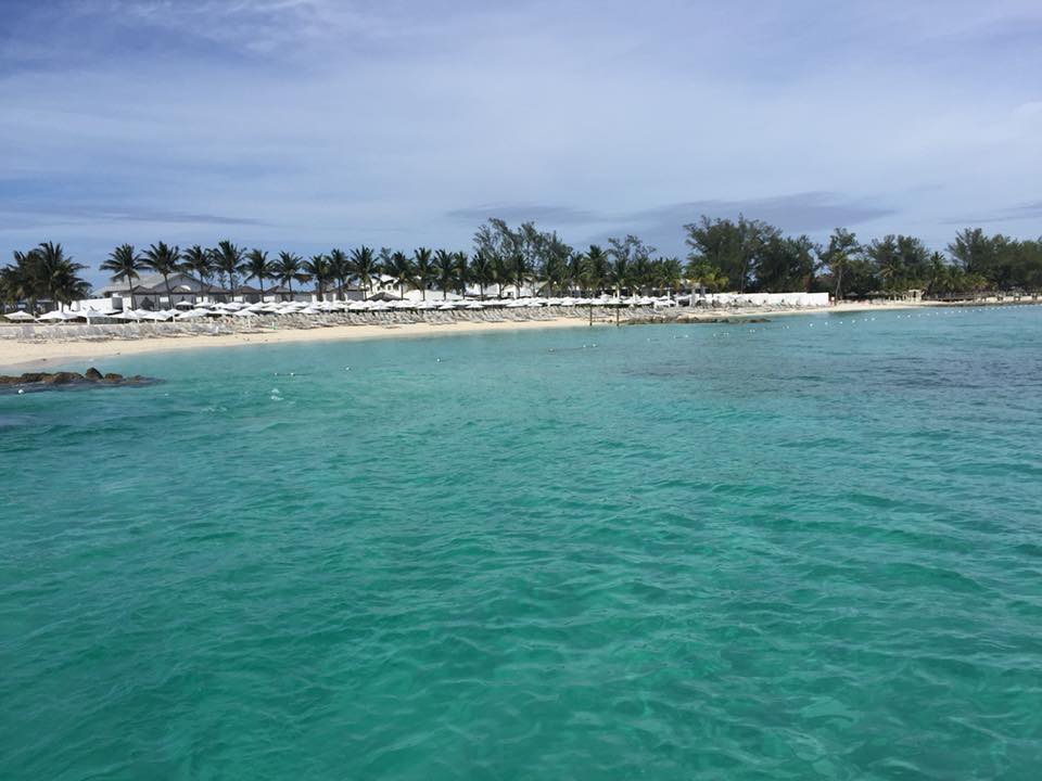 Upon exiting the gangway, we were welcomed to Nassau not just by the crew or the welcome sign, but by the vibrant colors boasted by store fronts and homes in our viewing vicinity. We were escorted to a smaller boat traveling to the island which was about 45 minutes from where the Liberty docked. As the small boat moved closer to the island, the water proceeded to lighten until we finally reached the crystal clear shore of Balmoral Island. The island features Sandals beach resort as the only place to stay, but offers five different tours experiences for those visiting daily. We opted to take the day at our own pace, exploring and relaxing until heading back to the Liberty. With about four hours to take in the beautiful scenery, we waded into the warm clear water on the beach and spent an hour or so taking pictures and collecting stones and shells. After rinsing off in the outdoor showers, we found a few beach chairs to lounge in before boarding our boat back to the Liberty. Besides Carnival passengers, this slightly larger boat also brought back greenery to Nassau's mainland. While the boat ride to the island had been quiet and relaxing, this boat had a fun light atmosphere created by the crew and their music and dancing. The ride back to our docked ship seemed to breeze by as we danced to the Cupid Shuffle, the Wobble and much more. After bidding adieu to the boat's crew, we quickly made our way back towards the Liberty and with one last glance at Nassau, boarded.