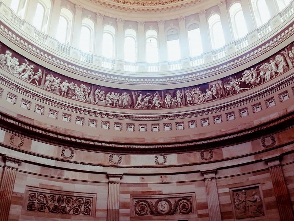 The National Archives is easily one of the most famous tourist spots in Washington DC. That, coupled with it's major role in my favorite movie, made it a definite must on our tour. Besides being home to some of the most important documents in the world, let alone the country, the National Archives offer countless resources for research and even offers specialized classes and events. After snapping some photographs outside of the Archives, we stood in line and waited until the doors (not the bronze ones, unfortunately) opened at 10am to begin our exploration. With only an hour and a half to explore before our tour at the capitol, we soaked in as much as possible with America's founding documents and their Vietnam exhibit. Time flew by and soon we were power walking our way to the Capitol Building. We decided to eat lunch in their cafeteria before our tour. A quick tip for first time visitors to DC, no matter your timing, always be early. Luckily, the Capitol has tours running every 10 minutes. You can book yourself a tour online, or through your local legislation. Reservations are recommended, but not required. With a quick video on the Capitol and its' history, we were then handed our own listening devices and lead from room to room to see the historic beauty that the building holds. Not only was the inside magnificent, but the architecture and grounds surrounding the building were as well. In fact, that was one constant that DC's buildings all held. The historical and architectural elements of each location we visited were amazing, especially due to the age of most of them!